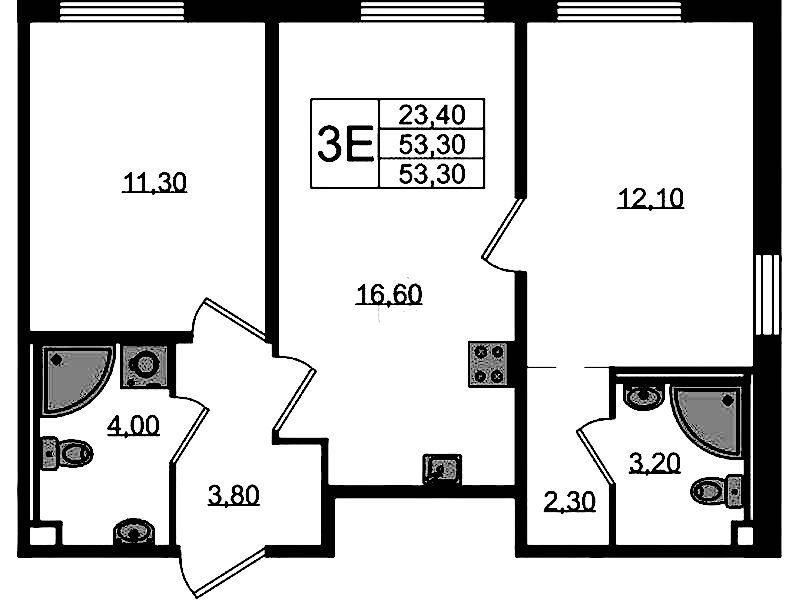 - Площадь53,3 м2