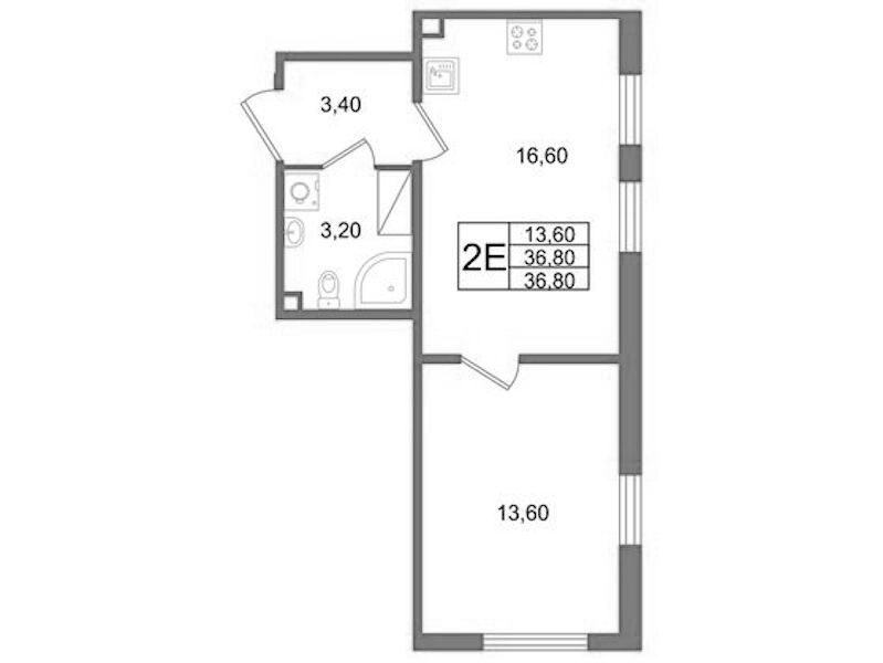 Однокомнатная квартира на 12-ом этаже 36,8 кв.м