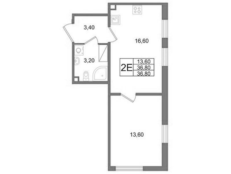 Однокомнатная квартира на 16-ом этаже 36,8 кв.м