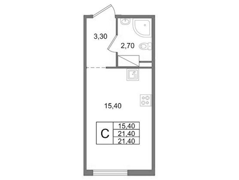 Квартира-студия на 9-ом этаже 21,4 кв.м