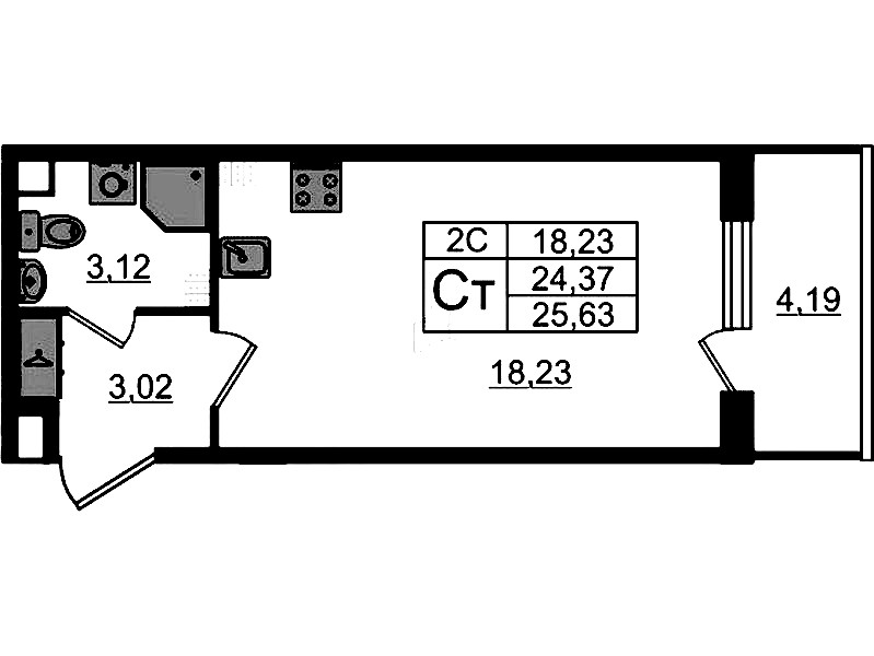 • Площадь24,37 м2