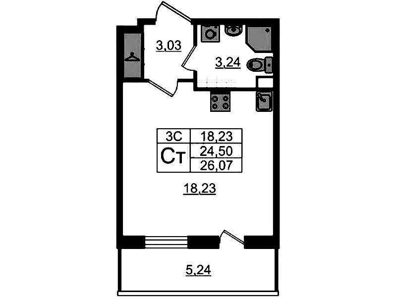 - Площадь24,5 м2