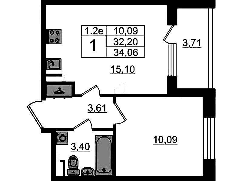 - Площадь32,2 м2