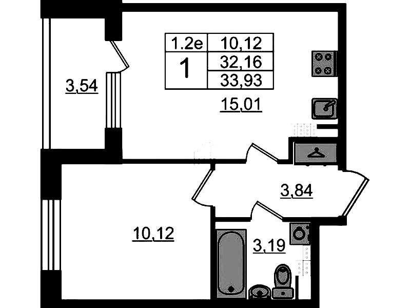 Однокомнатная квартира на 5-ом этаже 32,16 кв.м
