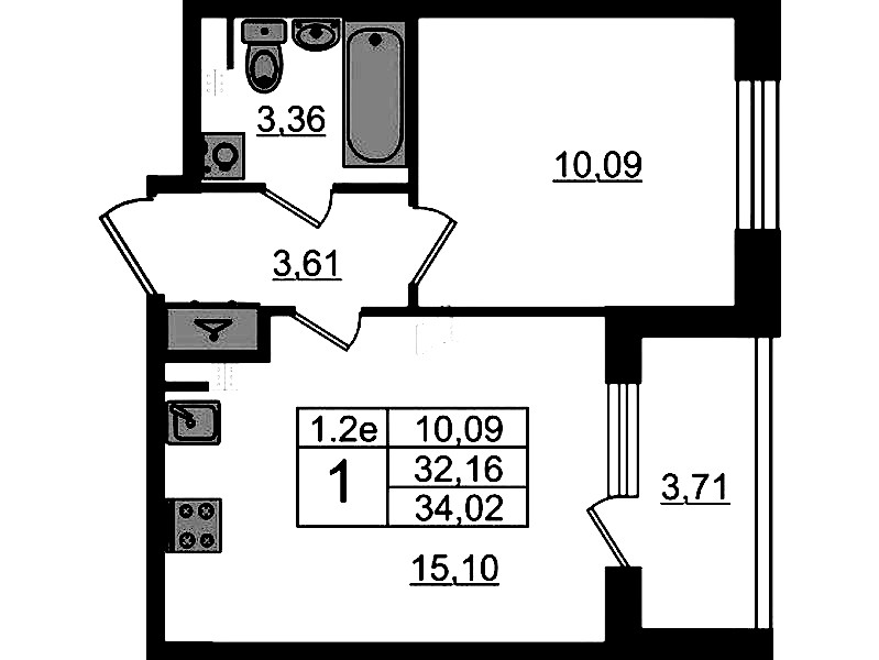 • Площадь32,16 м2