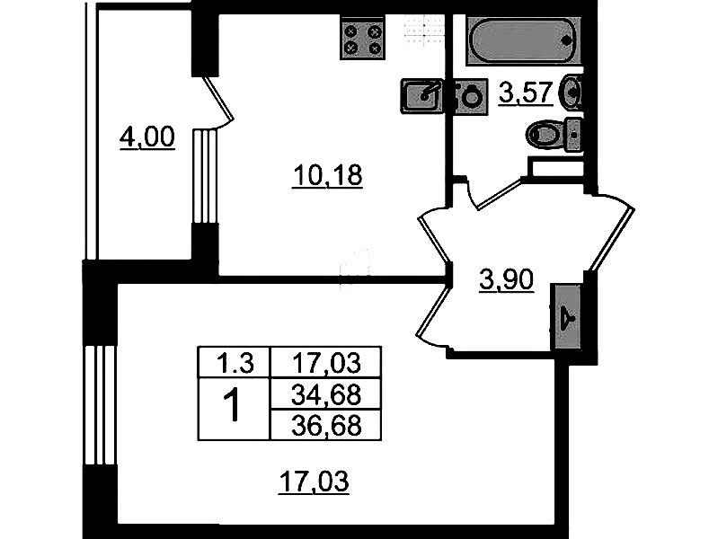 • Площадь34,68 м2