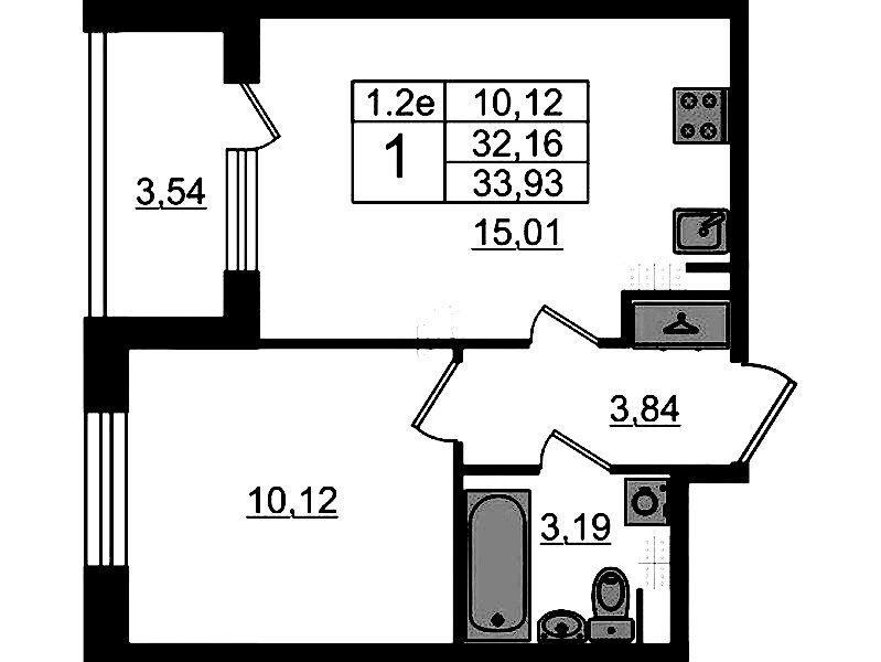Однокомнатная квартира на 5-ом этаже 32,16 кв.м