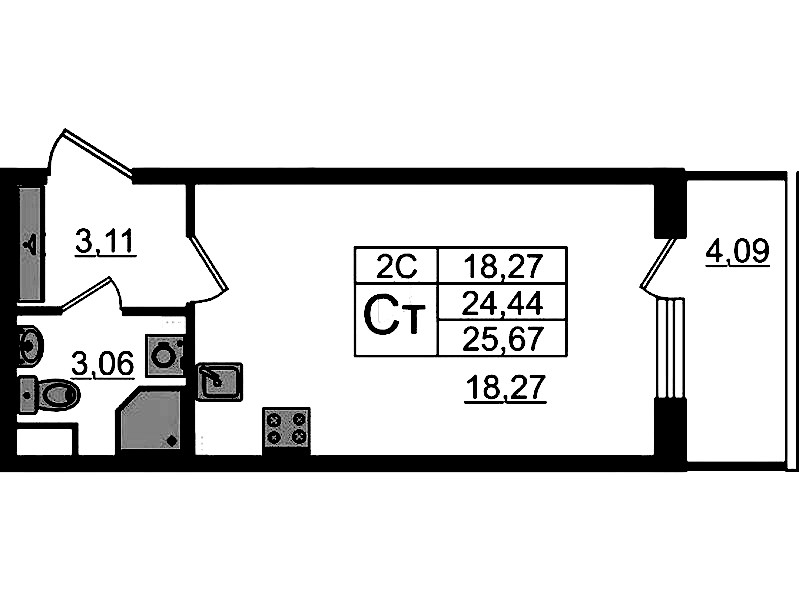 - Площадь24,44 м2