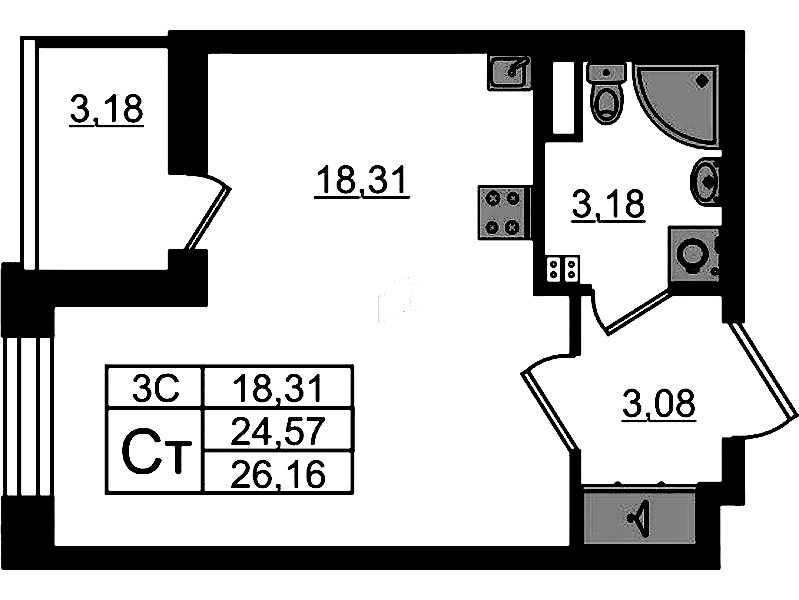 - Площадь24,57 м2