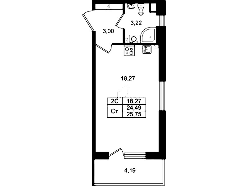 Квартира-студия на 2-ом этаже 24,49 кв.м