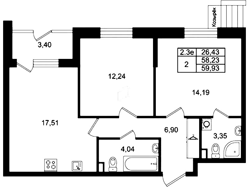 • Площадь58,23 м2