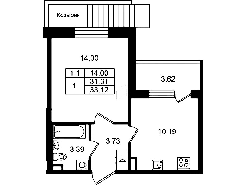 • Площадь31,31 м2