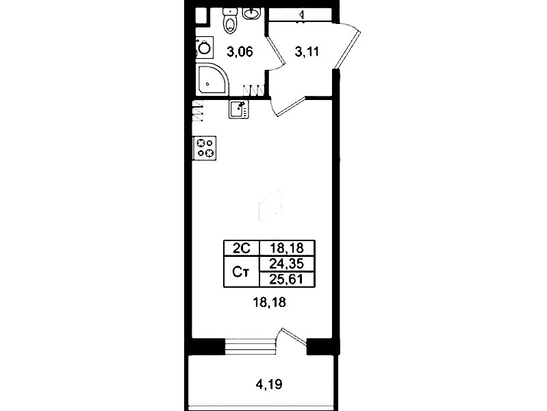 - Площадь24,35 м2