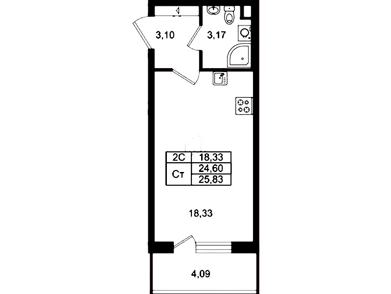 Квартира-студия на 2-ом этаже 24,6 кв.м