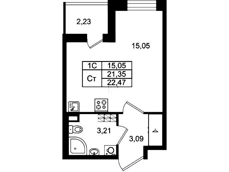 Квартира-студия на 5-ом этаже 21,35 кв.м