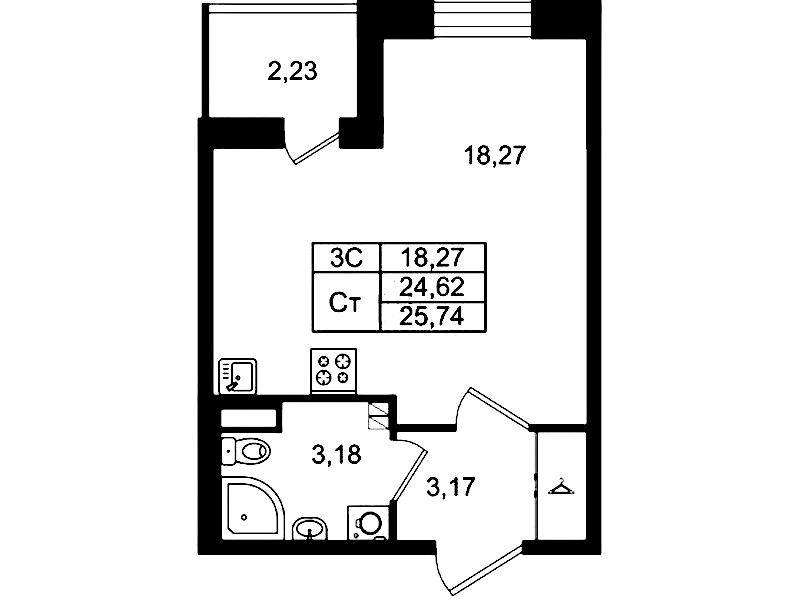 • Площадь24,62 м2