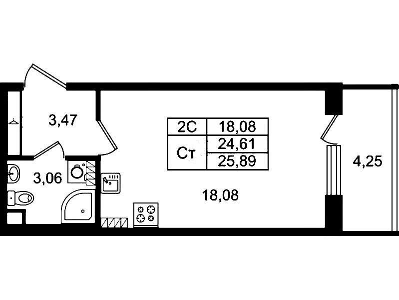 • Площадь24,61 м2