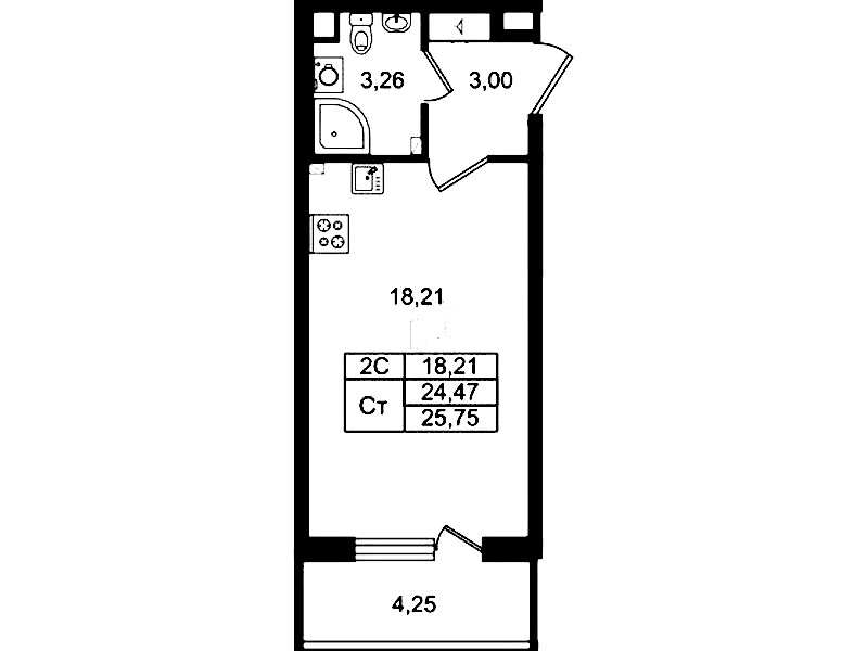 Квартира-студия на 2-ом этаже 24,47 кв.м