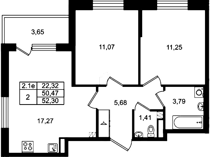 - Площадь кухни17,27 м2