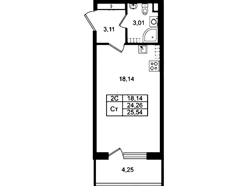Квартира-студия на 5-ом этаже 24,26 кв.м