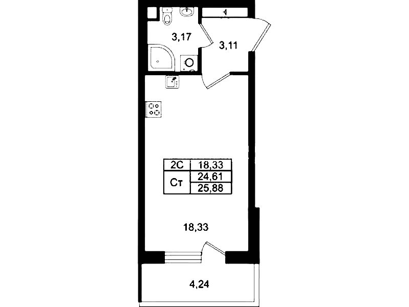 - Площадь24,61 м2