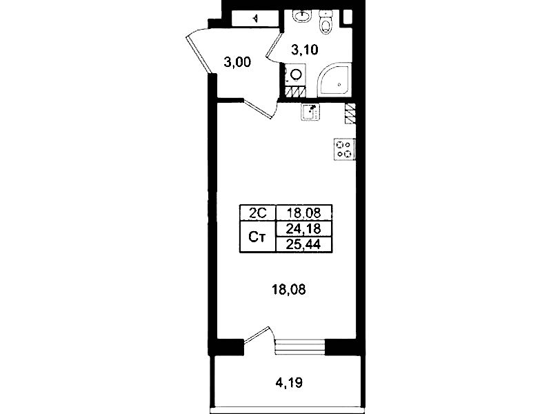Квартира-студия на 5-ом этаже 24,18 кв.м