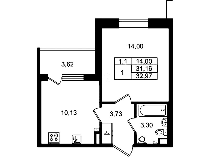 - Площадь31,16 м2