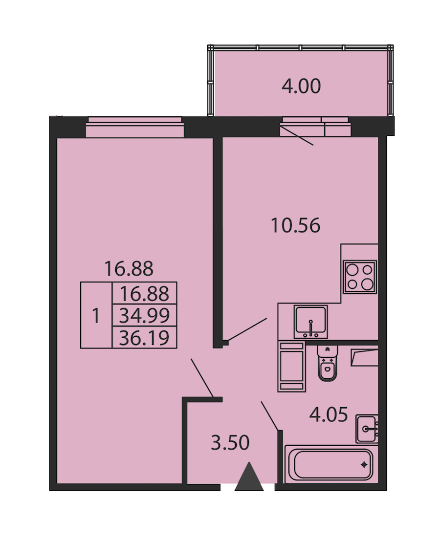 • Площадь34,99 м2