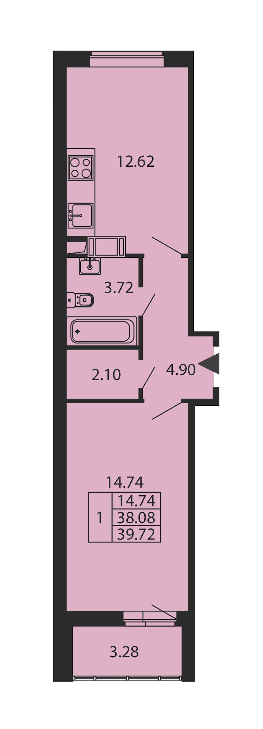 • Площадь38,08 м2
