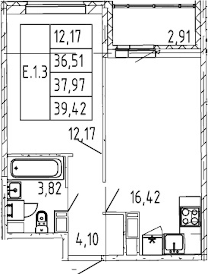 • Площадь36,51 м2