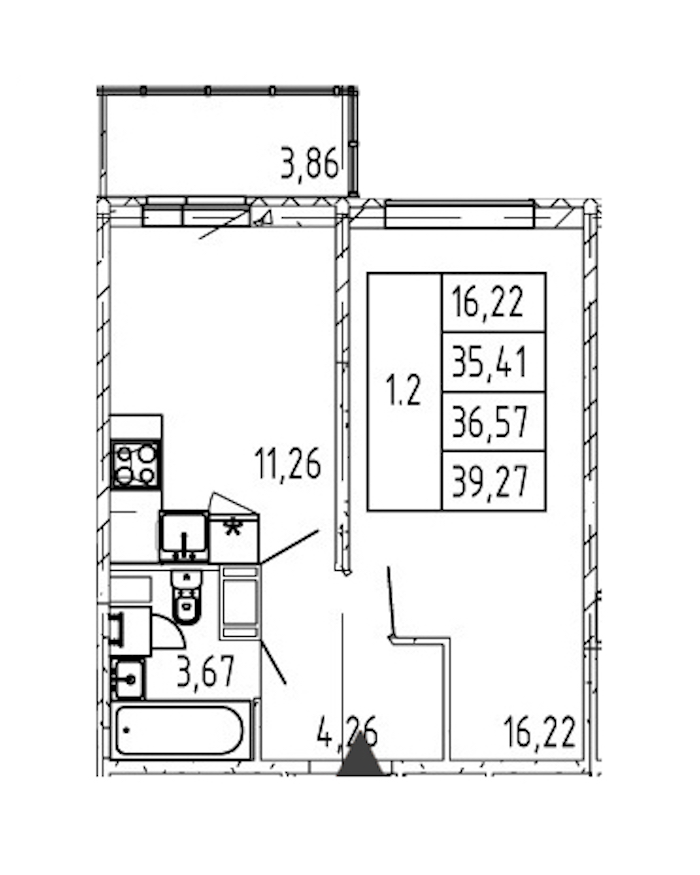 - Площадь35,41 м2
