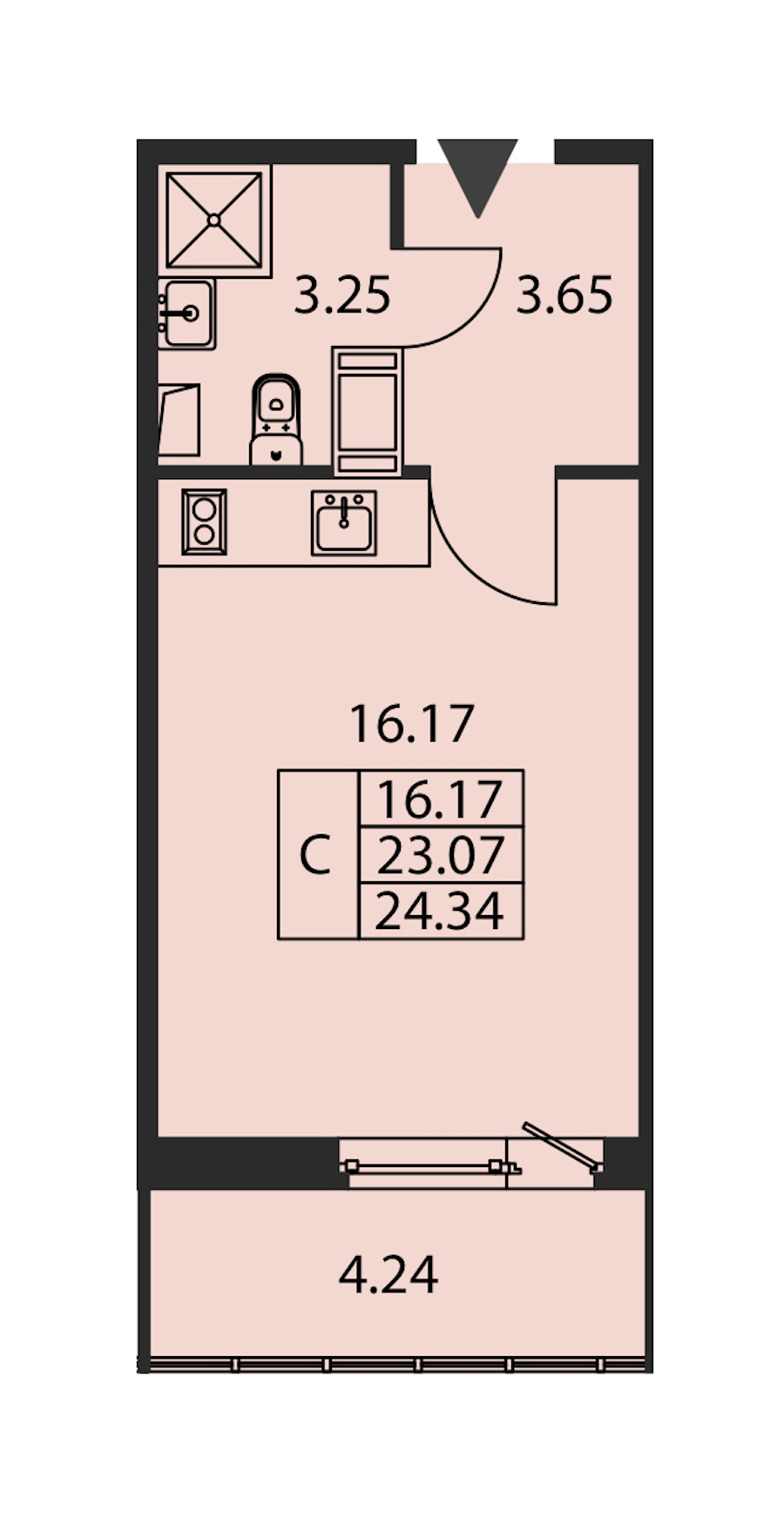 Квартира-студия на 12-ом этаже 23,07 кв.м