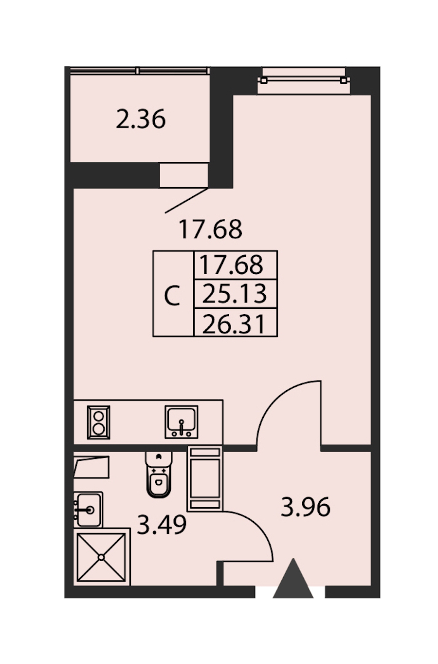- Площадь25,13 м2