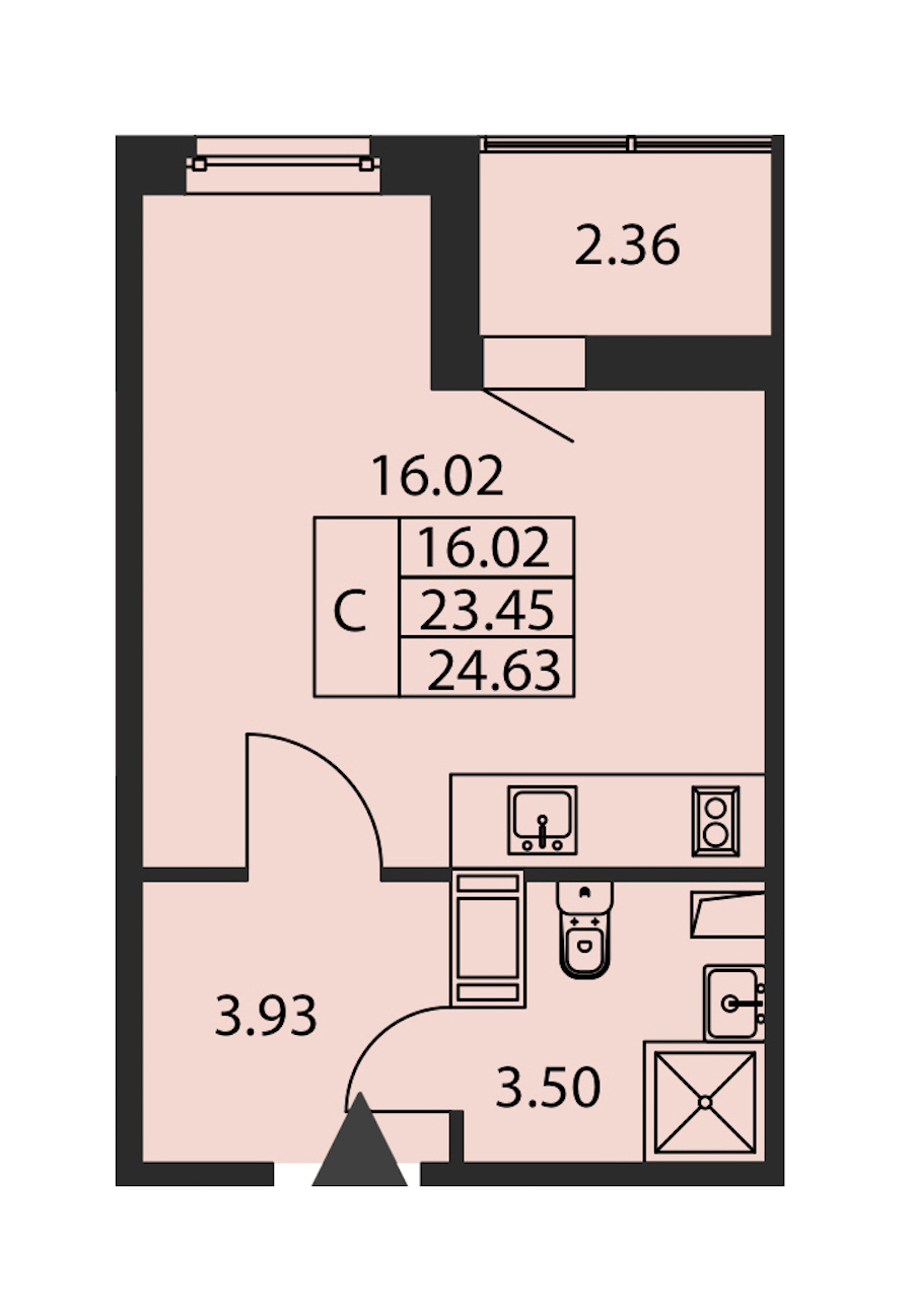 Квартира-студия на 11-ом этаже 23,45 кв.м