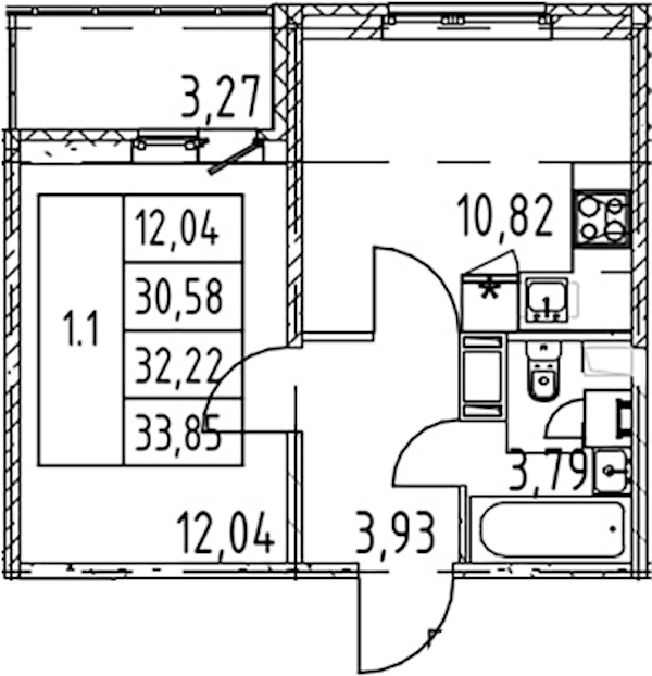 - Площадь30,58 м2