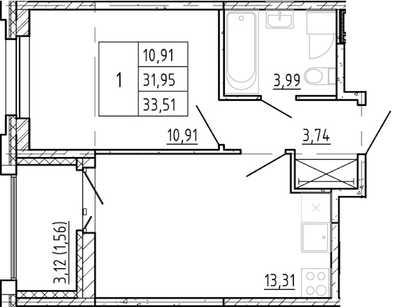 • Площадь31,95 м2