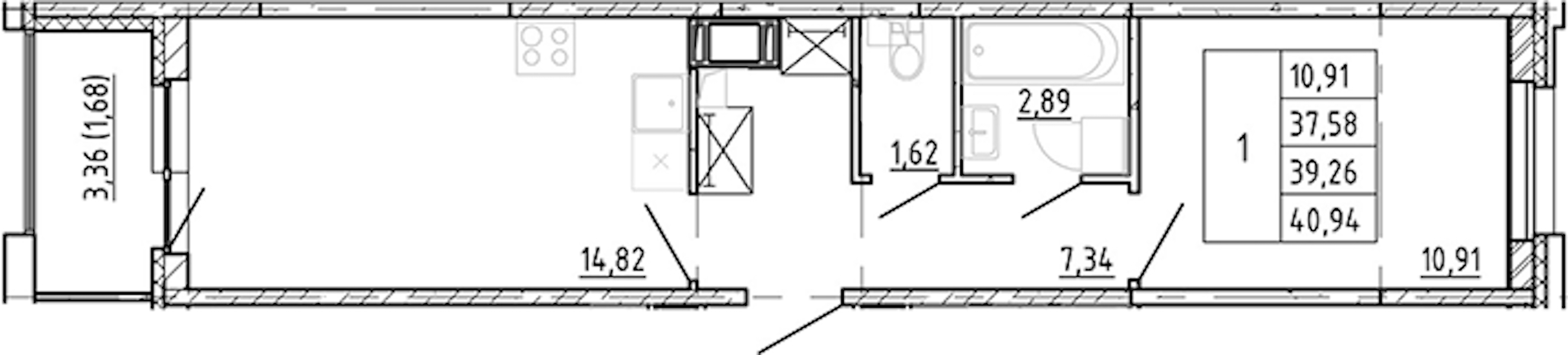- Площадь37,58 м2
