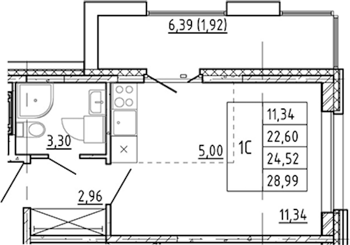 Квартира-студия на 2-ом этаже 22,6 кв.м