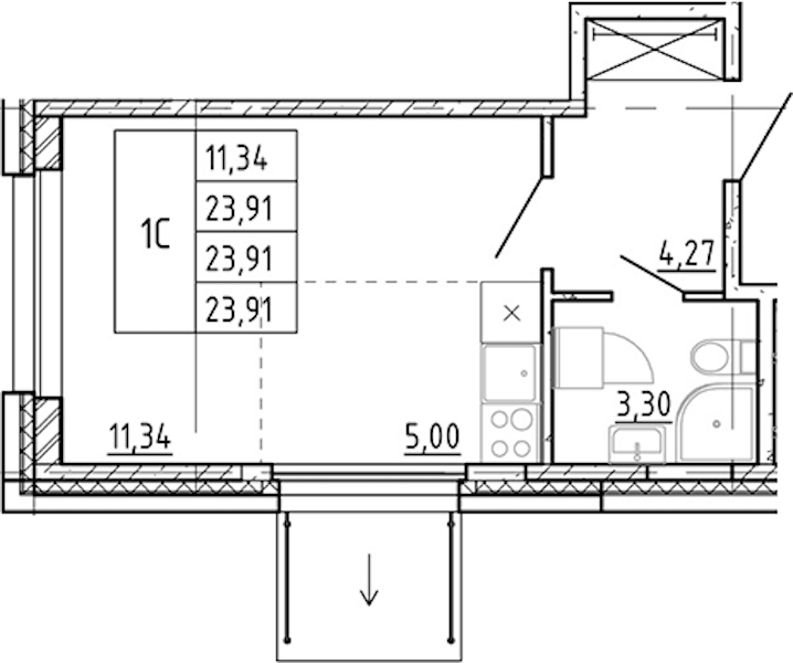 - Площадь23,91 м2