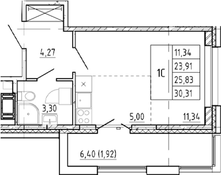 - Площадь23,91 м2