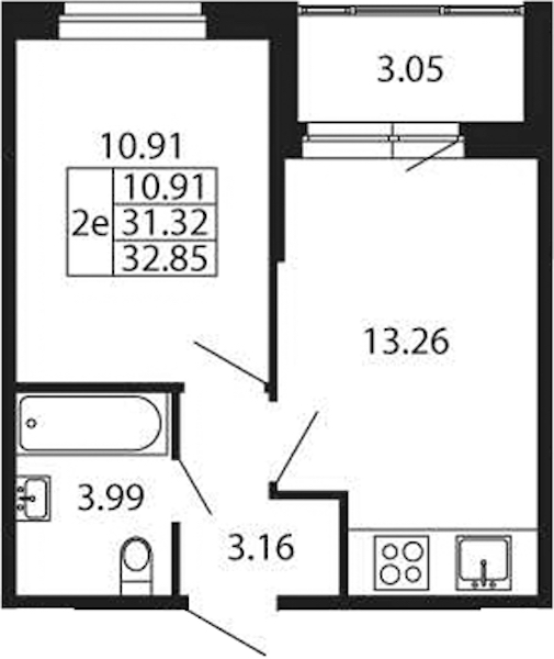 - Площадь31,32 м2