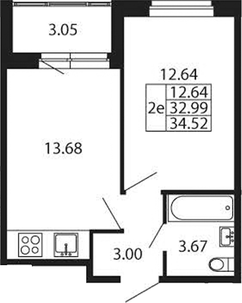 - Площадь32,99 м2