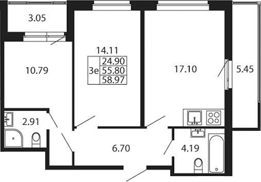 - Площадь55,8 м2