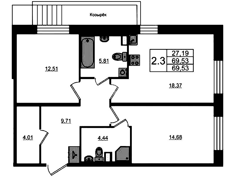 • Площадь68,2 м2