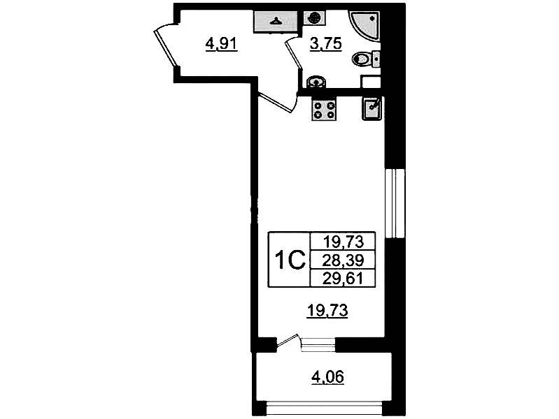 - Площадь27,8 м2