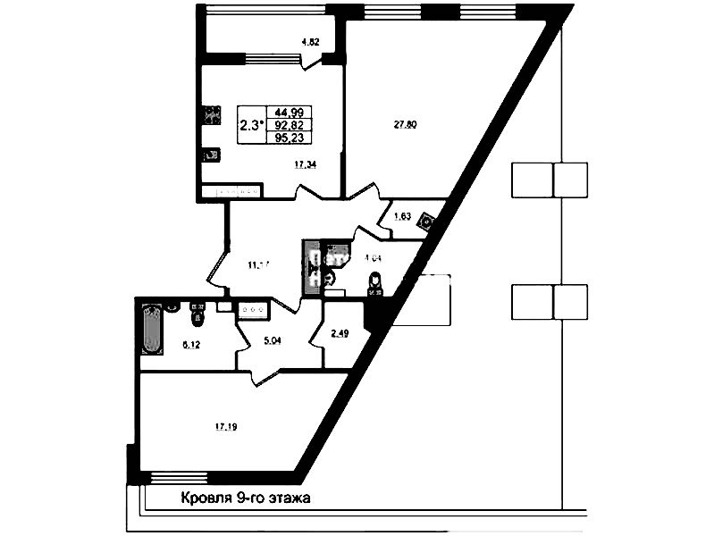 Двухкомнатная квартира на 10-ом этаже 91,1 кв.м