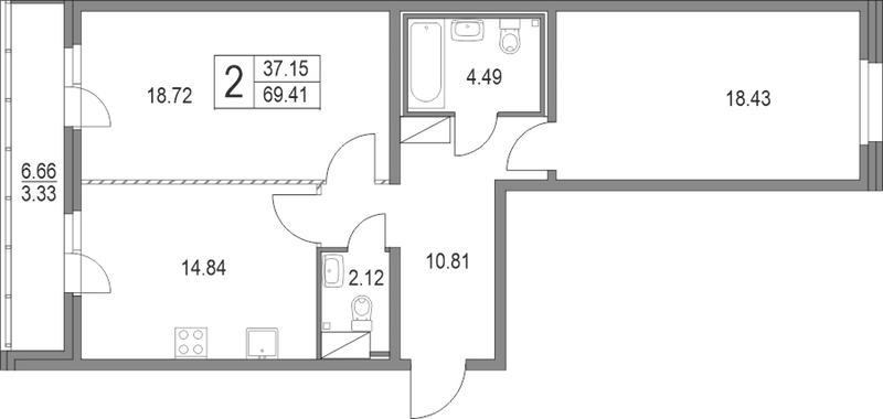 • Площадь69,41 м2