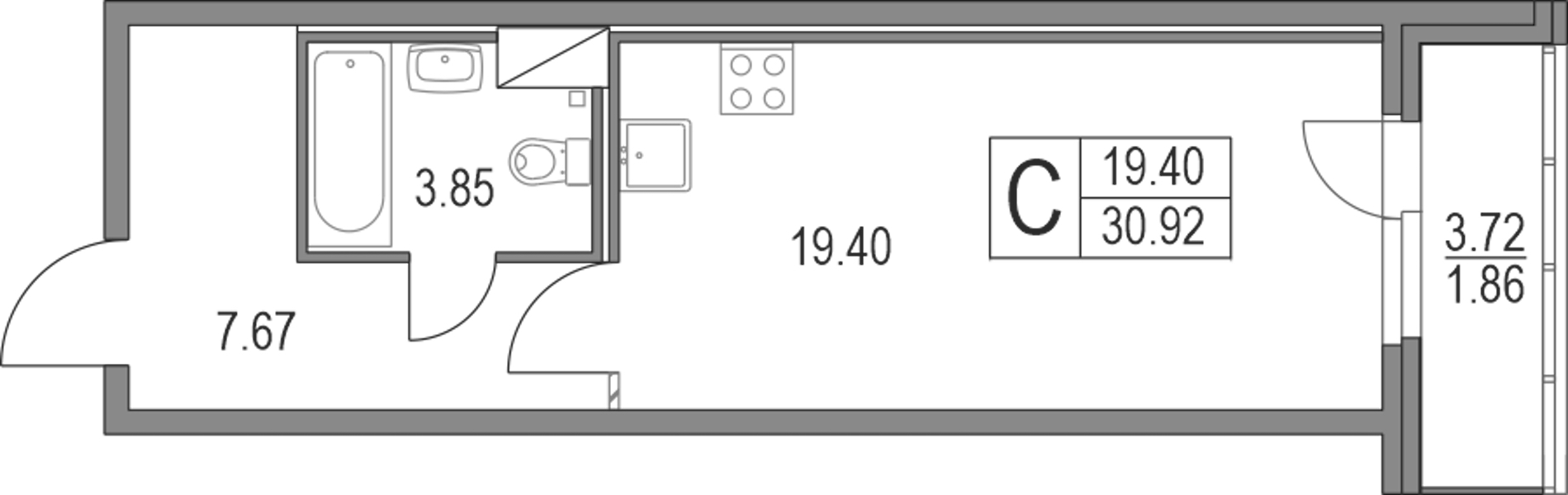 • Площадь30,92 м2