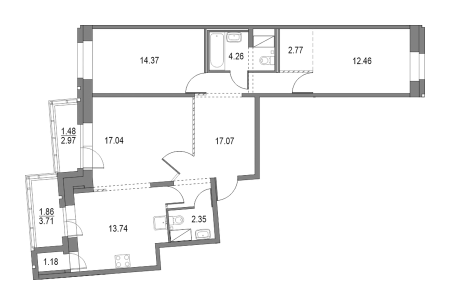 • Площадь кухни13,74 м2