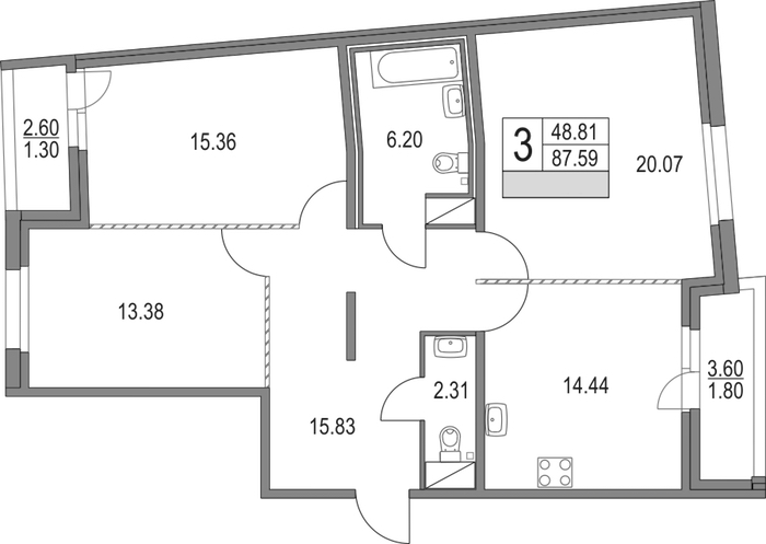 - Площадь87,59 м2